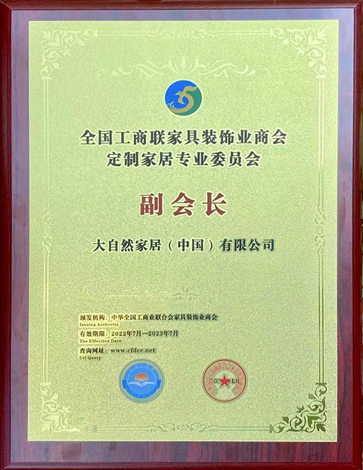 大自然家居當(dāng)選“全國(guó)工商聯(lián)家具裝飾業(yè)商會(huì)定制專委會(huì)副會(huì)長(zhǎng)”