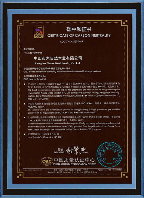 在木作領域深耕了28年的大自然家居,始終以“擔環(huán)保責任,普健康生活,做健康家居”作為其企業(yè)使命,“綠色健康”是其一以貫之的品牌基因。據了解,大自然全屋定制整合了大自然家居“零醛智造”、“高分子水漆”等多項技術,無論是實木地板,還是木門、墻板,或者櫥柜、衣柜等家居產品都可達國家E1、國際E0或歐洲最高EN300標準。同時,大自然家居還積極踐行國家“3060雙碳戰(zhàn)略”,早于2021年9月便獲得了中國質量認證中心(CQC)頒發(fā)的《碳中和證書》,走在了同行業(yè)企業(yè)綠色發(fā)展的前列。