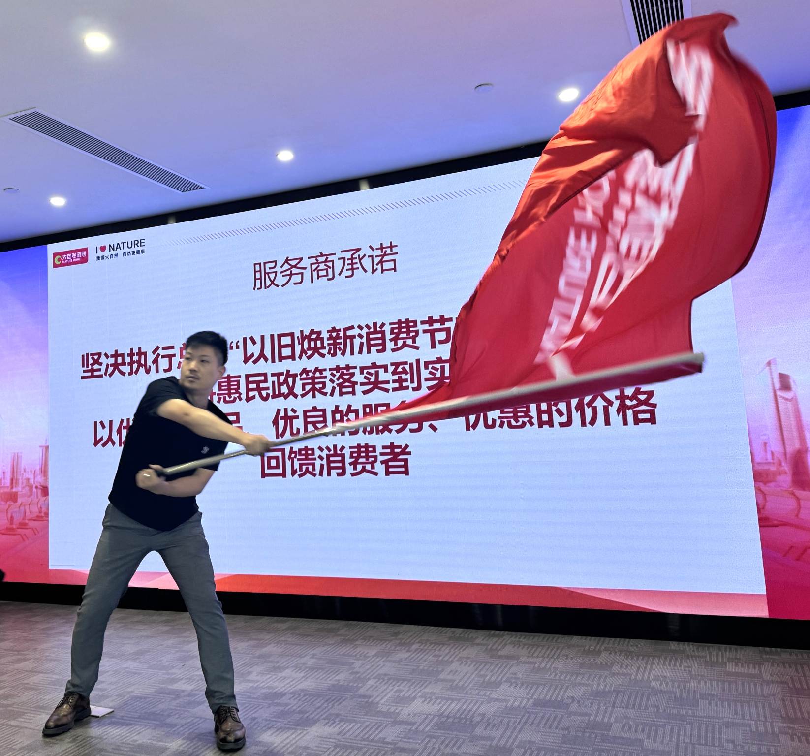 紙上談兵終覺淺,落到實處才是真。在啟動儀式上,大自然家居服務商代表鄭重宣誓,堅決將“以舊煥新消費節(jié)”惠民舉措貫徹落地,將活動氛圍推向高潮。響徹會場的誓詞,表明大自然家居自上而下將煥新活動落到實處的決心,用優(yōu)質的產(chǎn)品、優(yōu)良的服務、優(yōu)惠的價格與用戶搭建信任橋梁,為用戶安心以舊換新保駕護航。