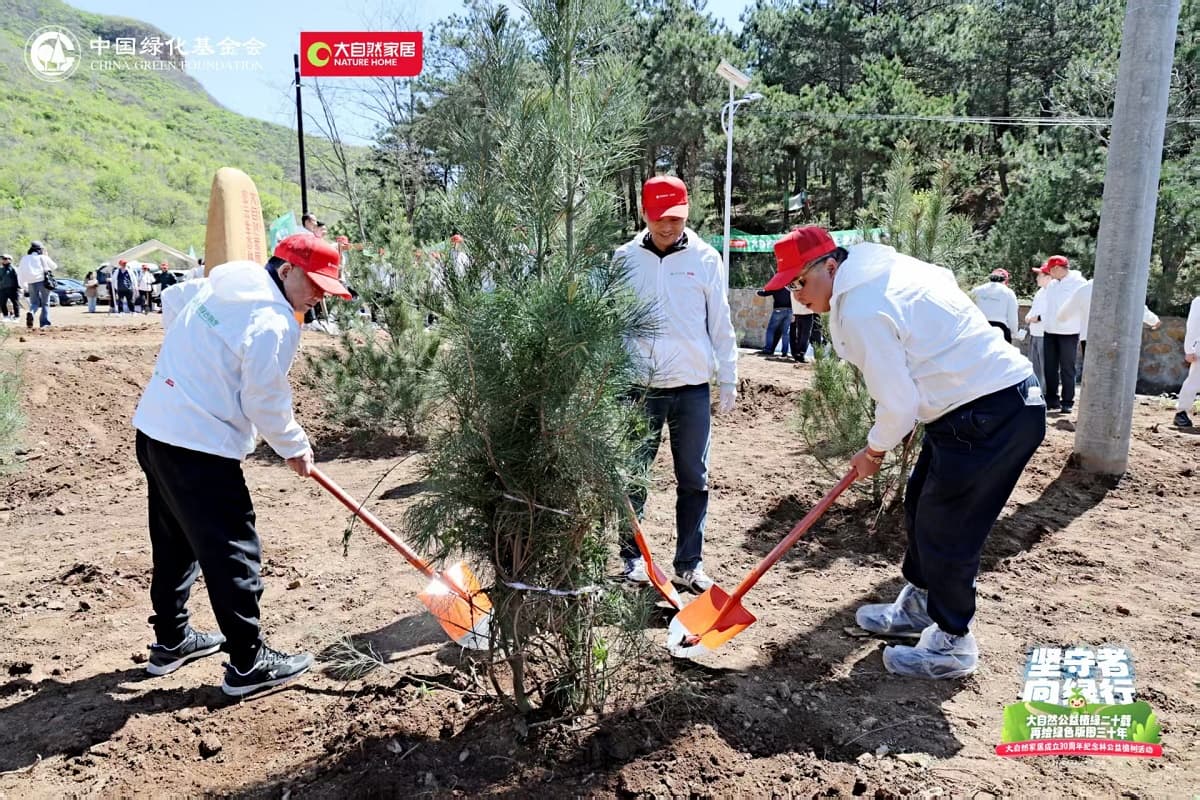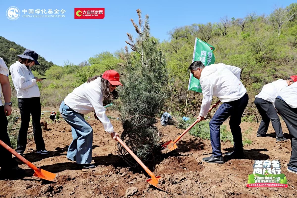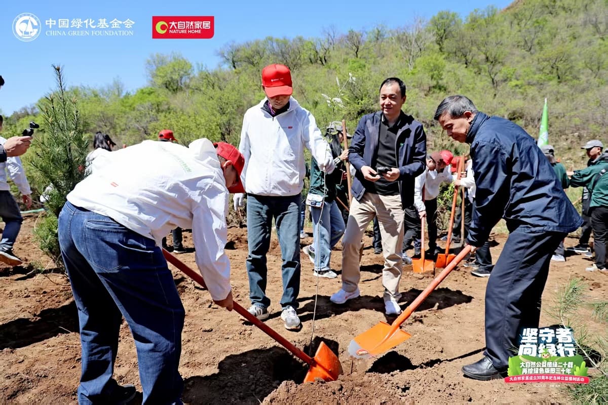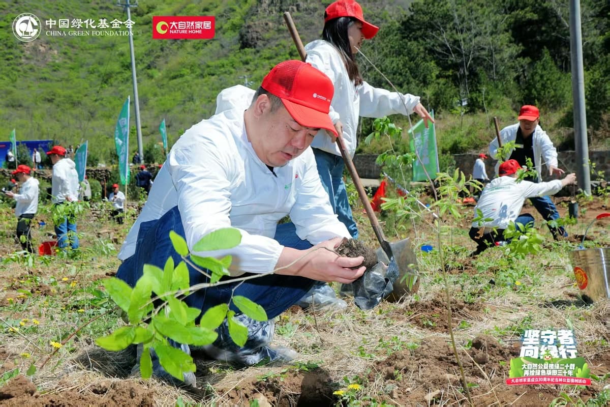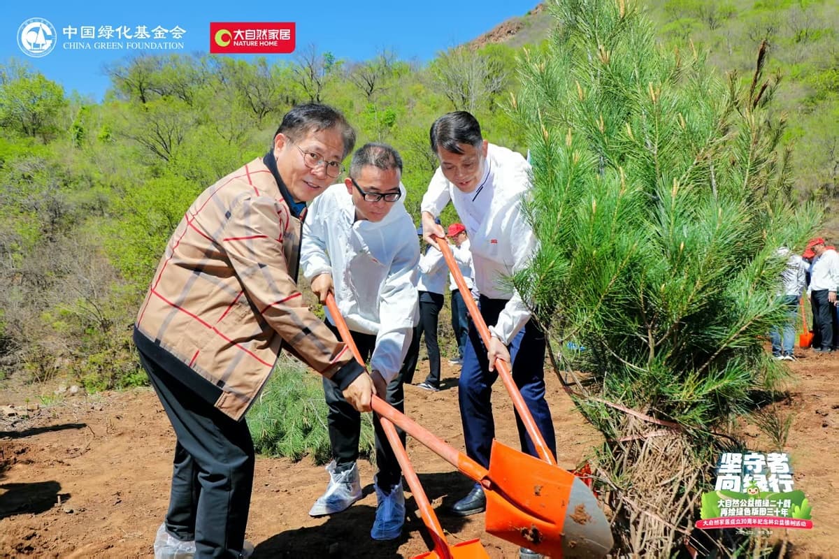 4月22日,值第56個(gè)世界地球日之際,大自然家居攜手中國(guó)綠化基金會(huì),于北京密云區(qū)啟動(dòng)“堅(jiān)守者·向綠行”公益植樹(shù)活動(dòng)。大自然家居以“成立30年、植樹(shù)20年”的雙里程碑,交出了一份“綠色智造”與“生態(tài)反哺”共生的可持續(xù)發(fā)展答卷?;顒?dòng)現(xiàn)場(chǎng),中國(guó)綠化基金會(huì)、北京市園林綠化局、北京林學(xué)會(huì)、中國(guó)林業(yè)科學(xué)研究院、中國(guó)林產(chǎn)工業(yè)協(xié)會(huì)、中國(guó)林業(yè)產(chǎn)業(yè)聯(lián)合會(huì)、中國(guó)木材保護(hù)工業(yè)協(xié)會(huì)、中國(guó)木材與木制品流通協(xié)會(huì)代表,大自然家居高層管理人員、全國(guó)核心經(jīng)銷商和供應(yīng)商代表,媒體以及大自然家居消費(fèi)者、公益植樹(shù)環(huán)保志愿者等各界人士,見(jiàn)證“中國(guó)綠色版圖”公益工程20年成果及未來(lái)十年計(jì)劃啟動(dòng)。