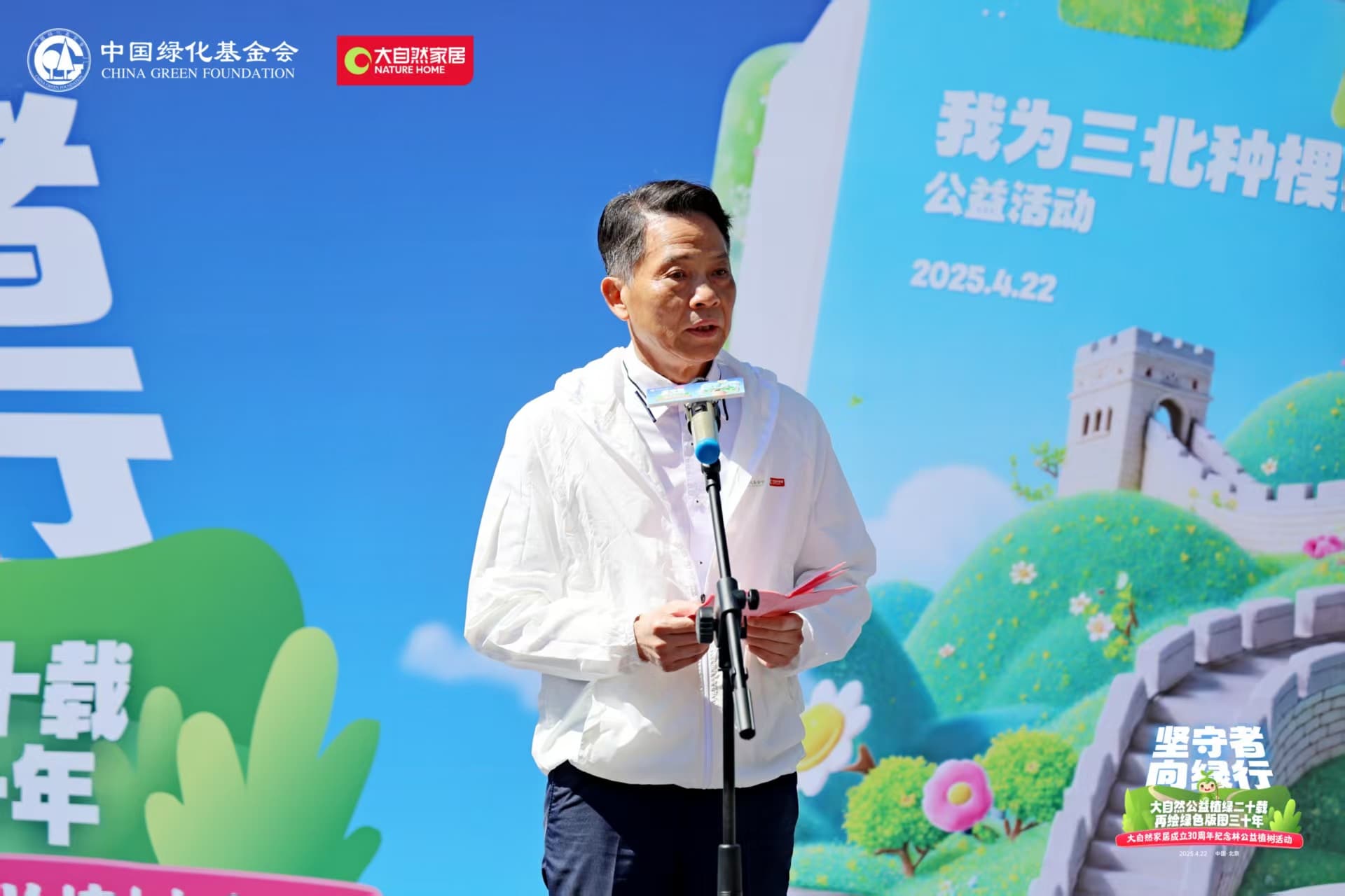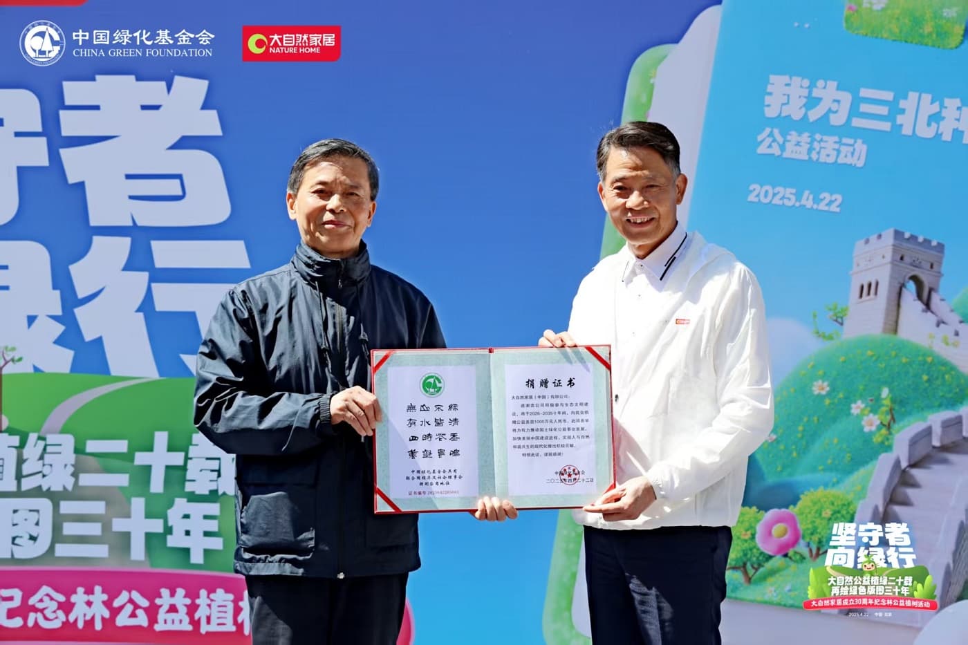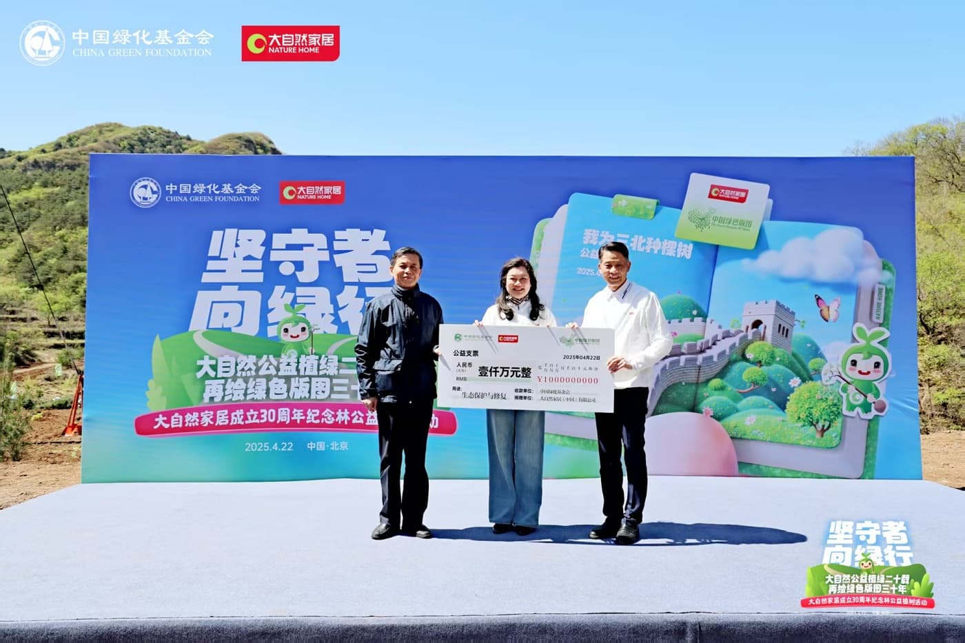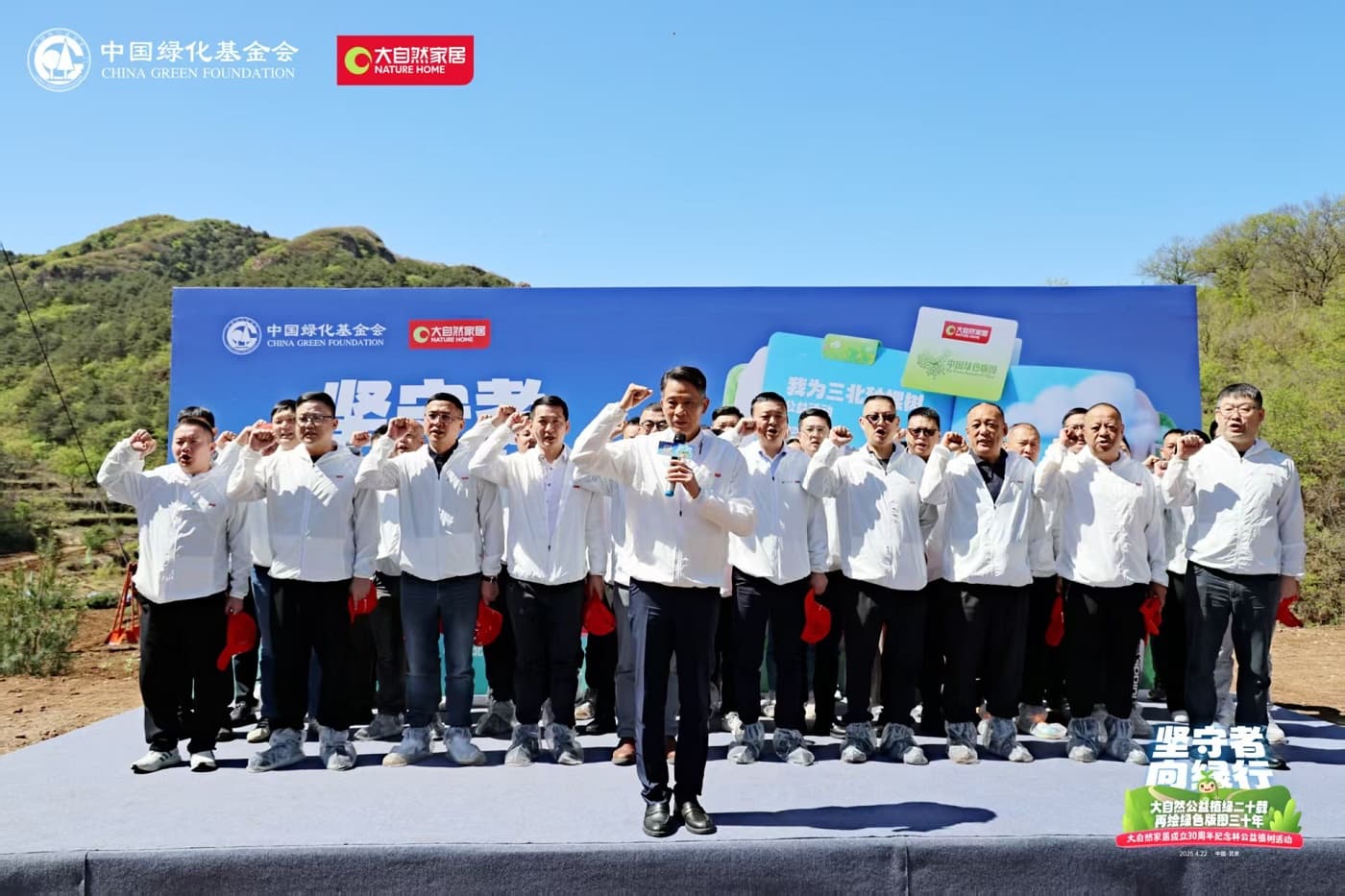 4月22日,值第56個(gè)世界地球日之際,大自然家居攜手中國(guó)綠化基金會(huì),于北京密云區(qū)啟動(dòng)“堅(jiān)守者·向綠行”公益植樹(shù)活動(dòng)。大自然家居以“成立30年、植樹(shù)20年”的雙里程碑,交出了一份“綠色智造”與“生態(tài)反哺”共生的可持續(xù)發(fā)展答卷?;顒?dòng)現(xiàn)場(chǎng),中國(guó)綠化基金會(huì)、北京市園林綠化局、北京林學(xué)會(huì)、中國(guó)林業(yè)科學(xué)研究院、中國(guó)林產(chǎn)工業(yè)協(xié)會(huì)、中國(guó)林業(yè)產(chǎn)業(yè)聯(lián)合會(huì)、中國(guó)木材保護(hù)工業(yè)協(xié)會(huì)、中國(guó)木材與木制品流通協(xié)會(huì)代表,大自然家居高層管理人員、全國(guó)核心經(jīng)銷商和供應(yīng)商代表,媒體以及大自然家居消費(fèi)者、公益植樹(shù)環(huán)保志愿者等各界人士,見(jiàn)證“中國(guó)綠色版圖”公益工程20年成果及未來(lái)十年計(jì)劃啟動(dòng)。