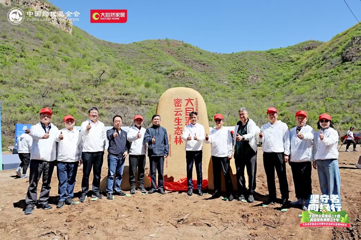 在密云生態(tài)林揭幕儀式上,中國(guó)綠化基金會(huì)主席陳述賢、大自然家居董事長(zhǎng)佘學(xué)彬、北京市園林綠化局二級(jí)巡視員王小平、中國(guó)綠化基金會(huì)副主席徐濟(jì)德、中國(guó)林業(yè)產(chǎn)業(yè)聯(lián)合會(huì)會(huì)長(zhǎng)封加平、中國(guó)綠化基金會(huì)副主席陳蓬、中國(guó)綠化基金會(huì)副主席葉智、中國(guó)綠化基金會(huì)秘書長(zhǎng)張全洲、中國(guó)木材保護(hù)工業(yè)協(xié)會(huì)會(huì)長(zhǎng)劉能文、中國(guó)木材與木制品流通協(xié)會(huì)會(huì)長(zhǎng)李佳峰、大自然家居副董事長(zhǎng)袁順意等,共同為“大自然30周年紀(jì)念林”揭幕。密云生態(tài)紀(jì)念林的落地,不僅見(jiàn)證了大自然家居30年來(lái)在綠色發(fā)展道路上的堅(jiān)守,更彰顯了其將可持續(xù)發(fā)展理念轉(zhuǎn)化為產(chǎn)業(yè)實(shí)踐的戰(zhàn)略定力。