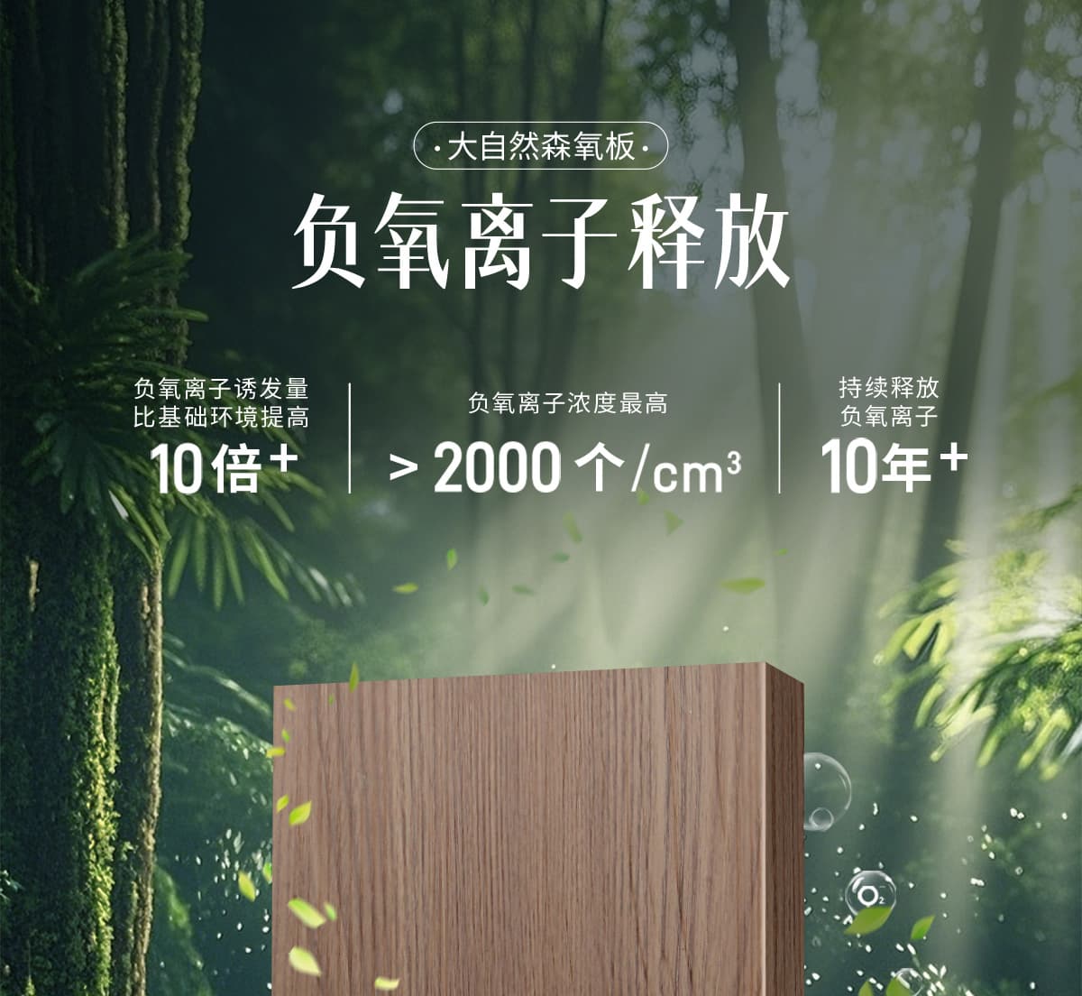 誘發(fā)空氣負(fù)離子量 比基礎(chǔ)環(huán)境提高10倍+